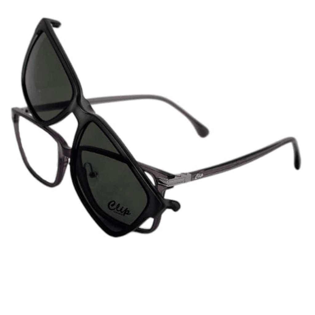 Os óculos com clip-on proporcionam uma solução prática e eficiente para quem usa lentes de grau e busca proteção solar sem carregar dois pares de óculos.